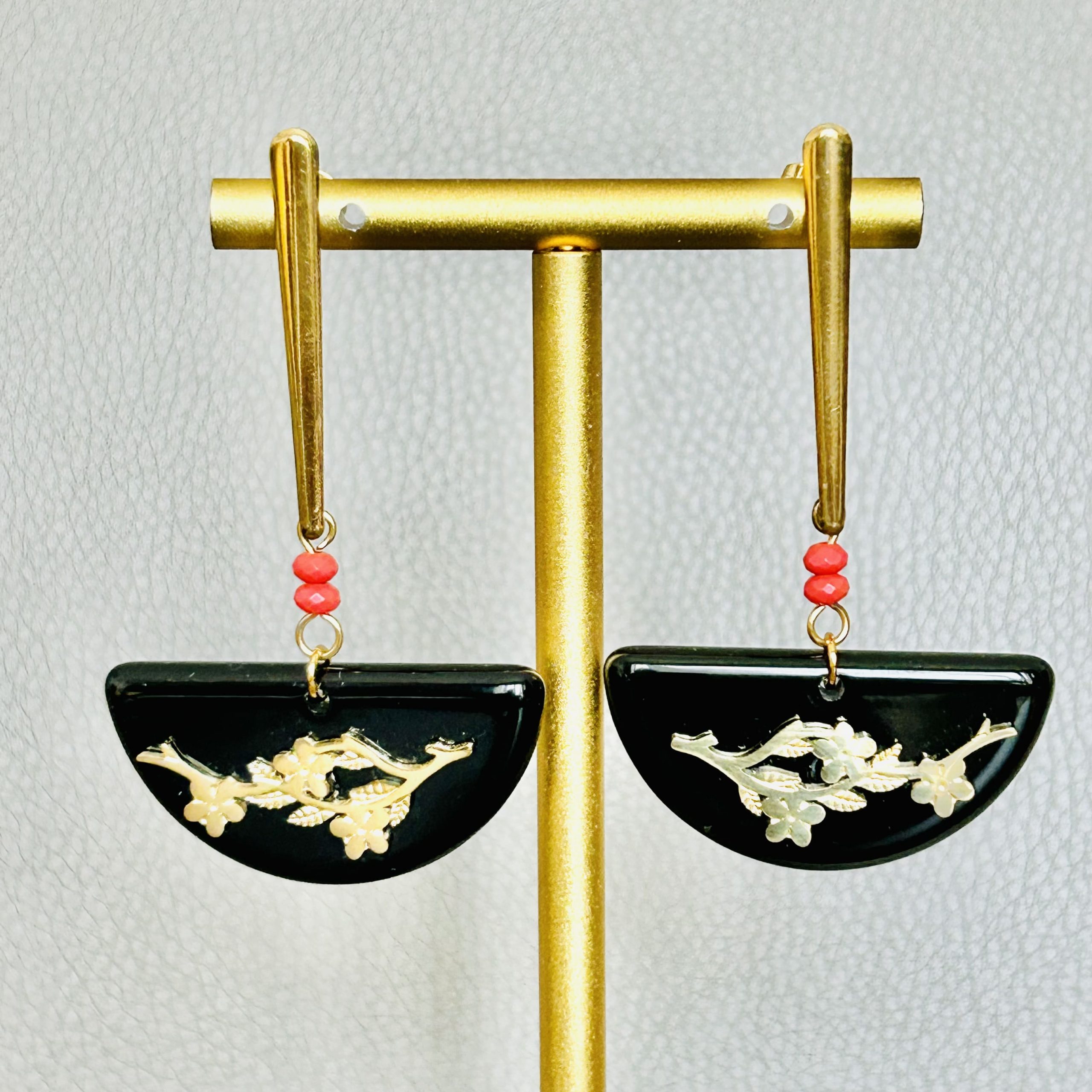Une paire de boucles d’oreilles avec une branche de fleur de cerisier.