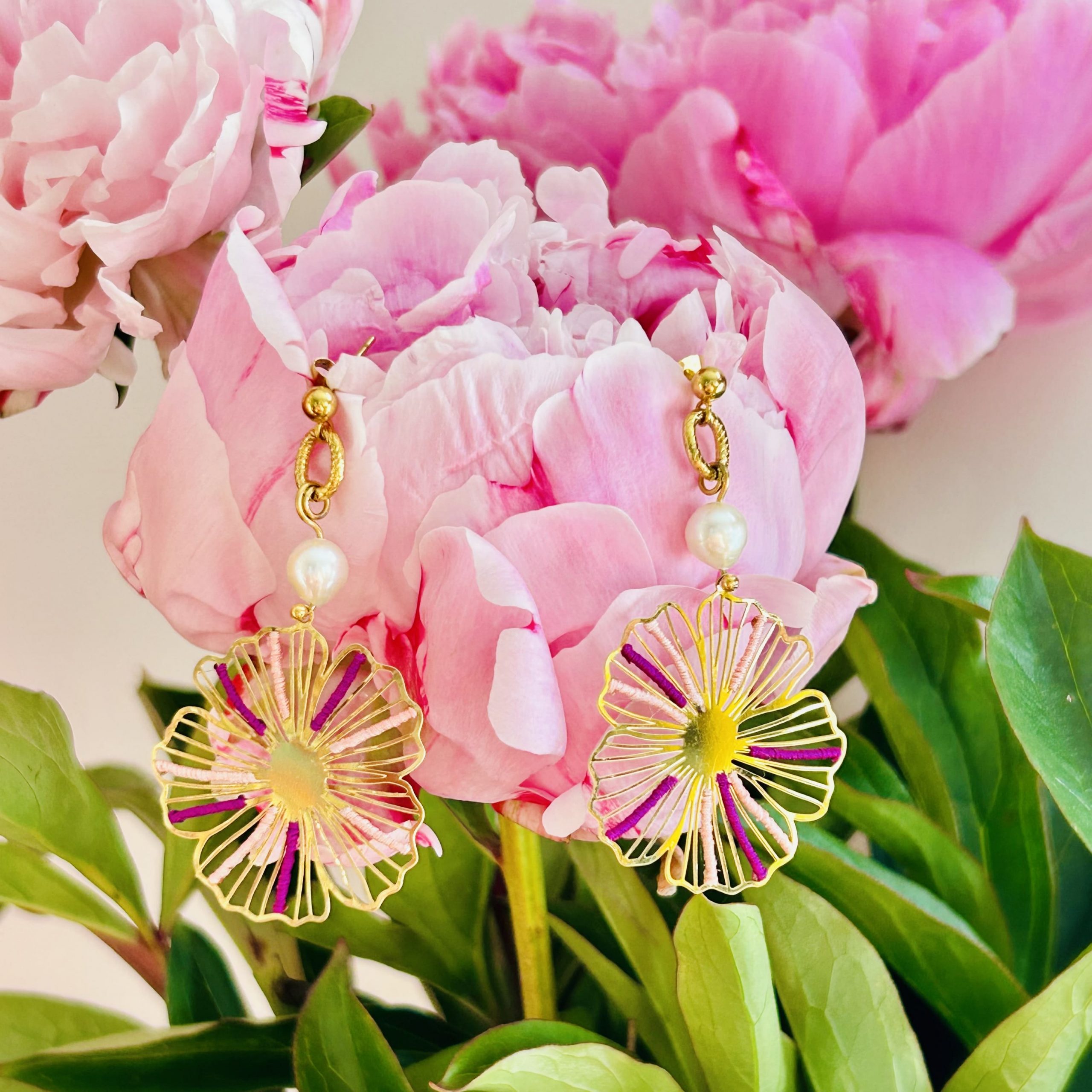 Une collection pleine de fraîcheur! La fleur en toutes saisons qui parfume votre quotidien. La couleur pastel d’un rose si tendre marié au violet de caractère donne une belle allure à cette boucle d’oreille. Les perles d’eau douce apportent de la classe et sont d’actualité.