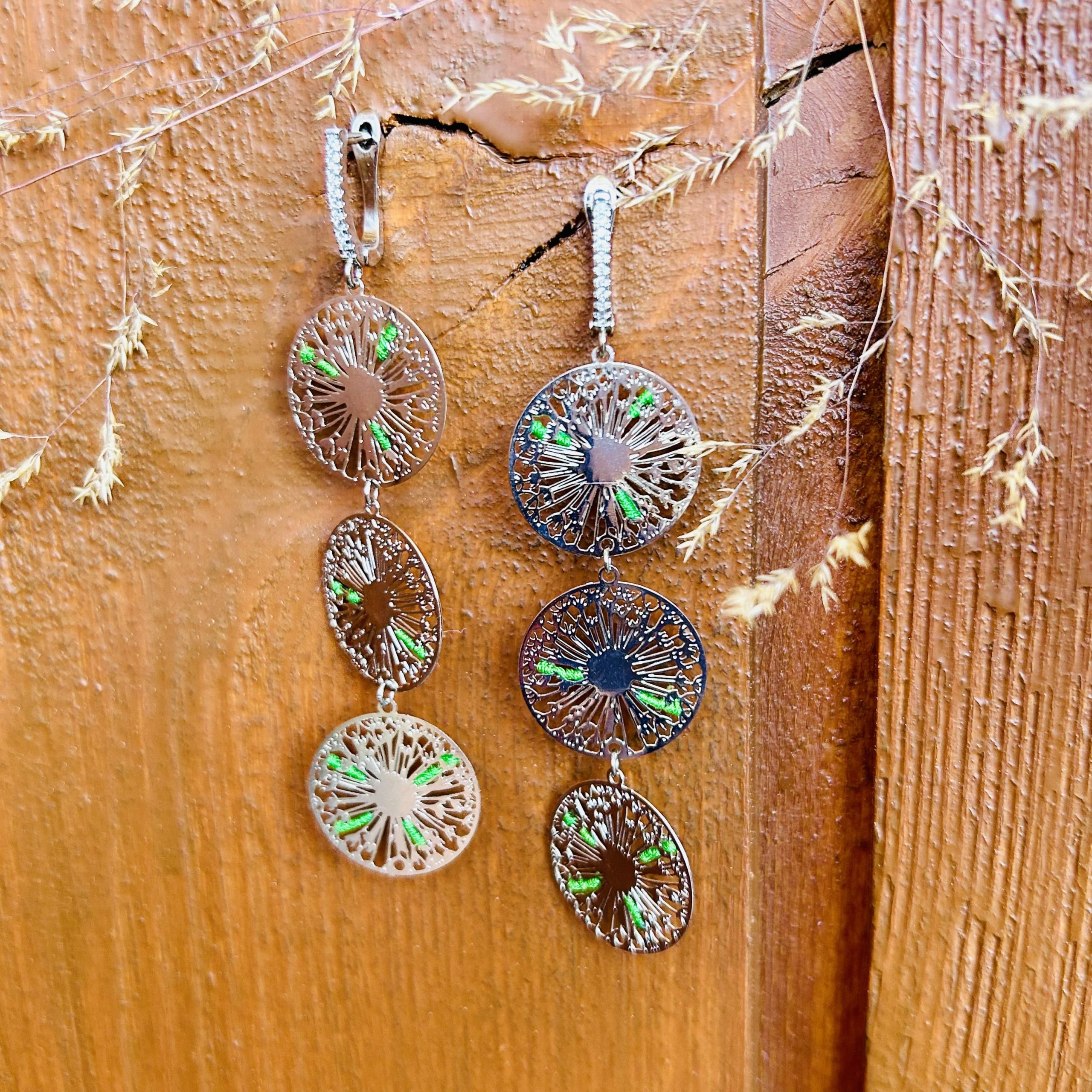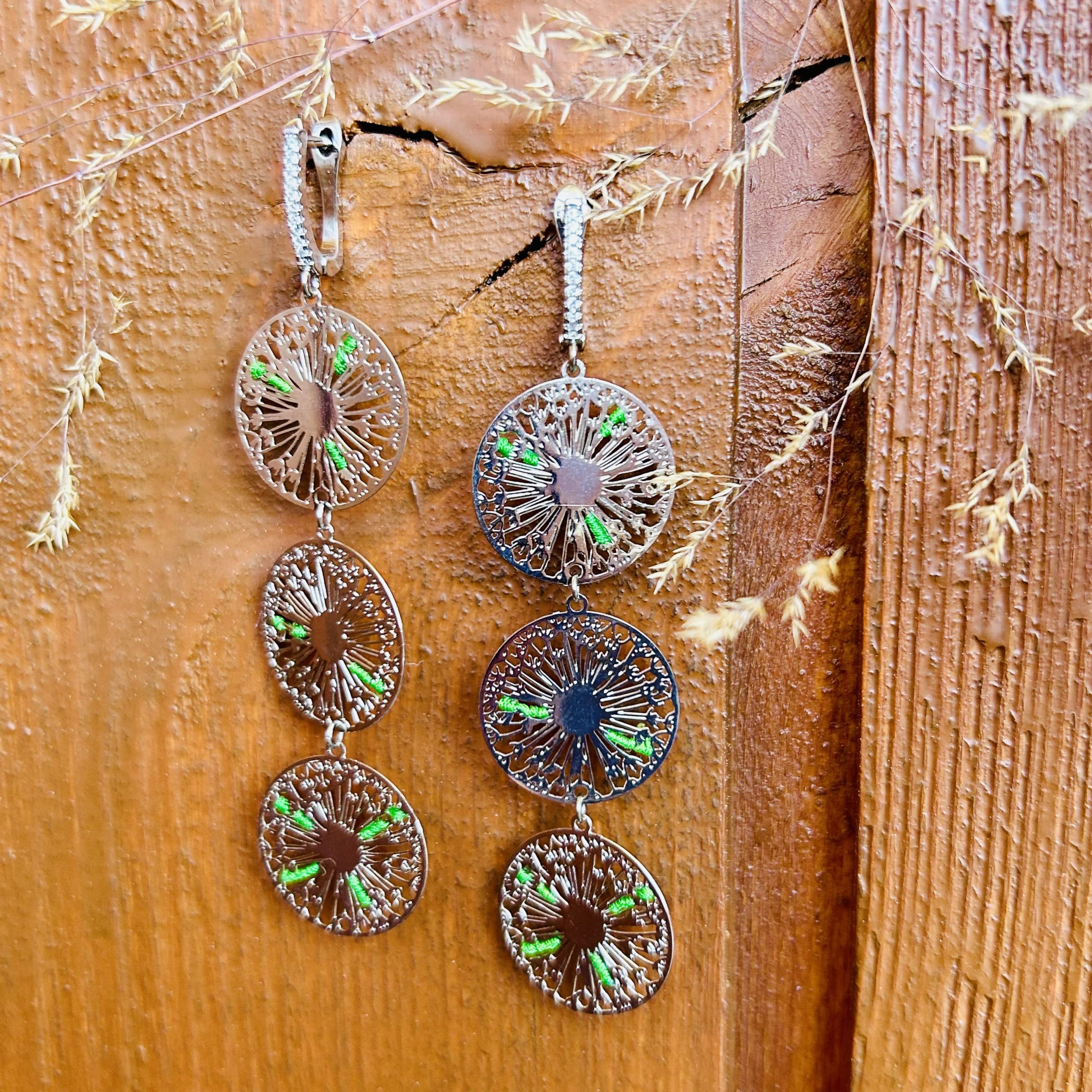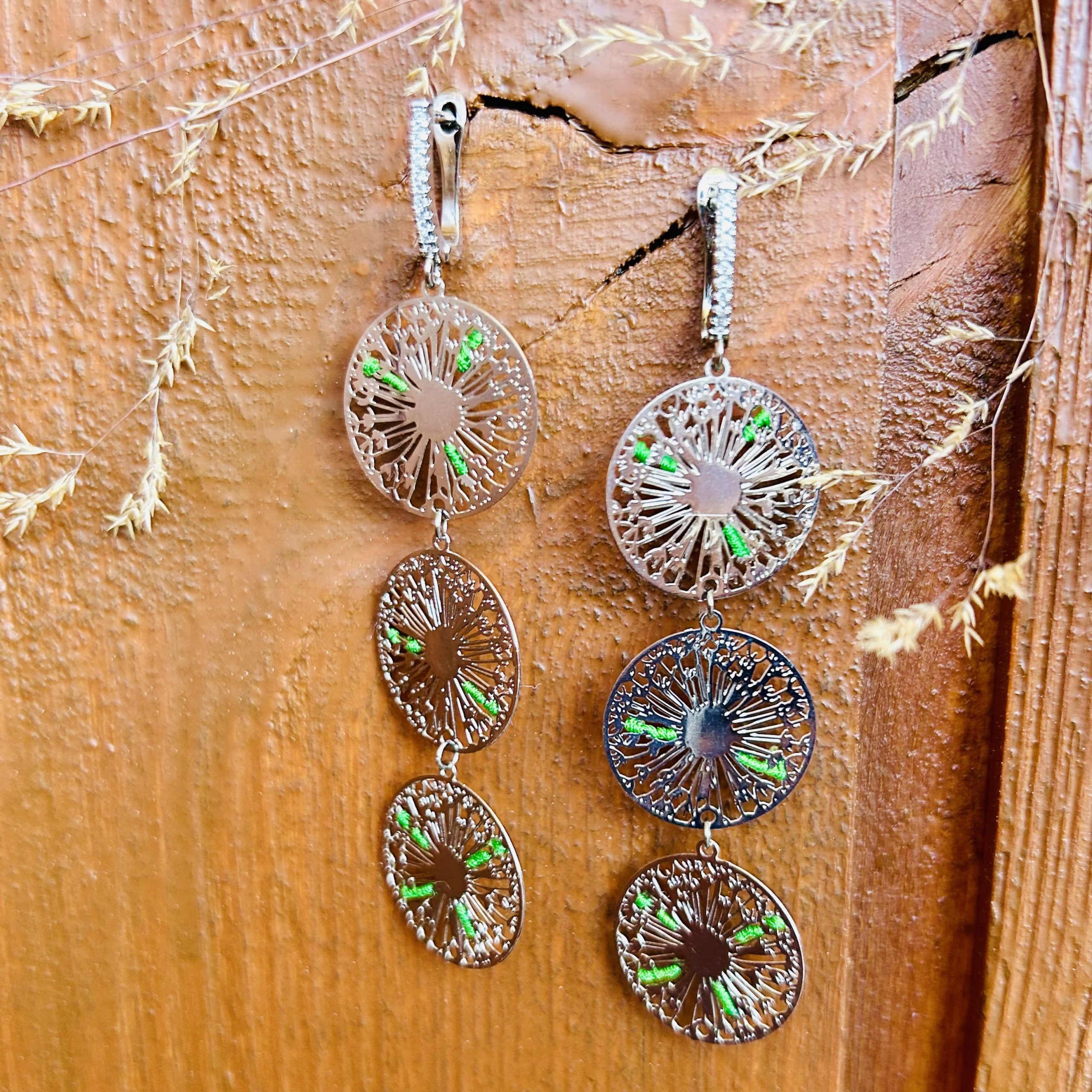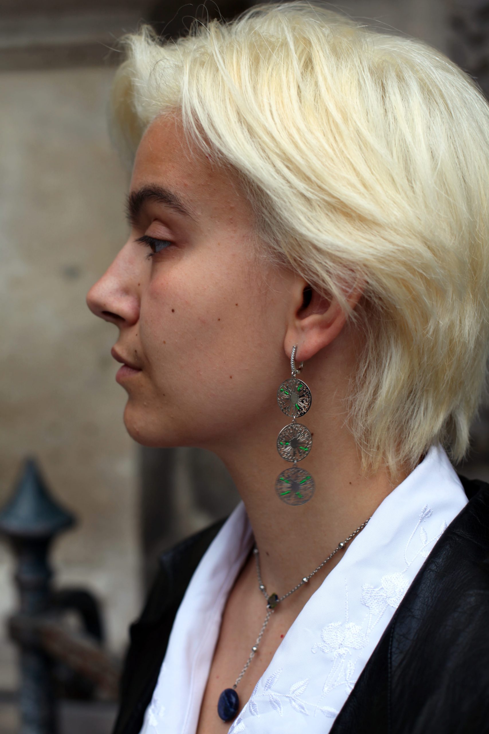 Un style, du caractère et de la finesse! ces boucles d’oreilles sont brodées sur les nervures. Elles sont légères et virevoltent au gré du vent! L’argenté est indémodable et a toujours de la classe!
