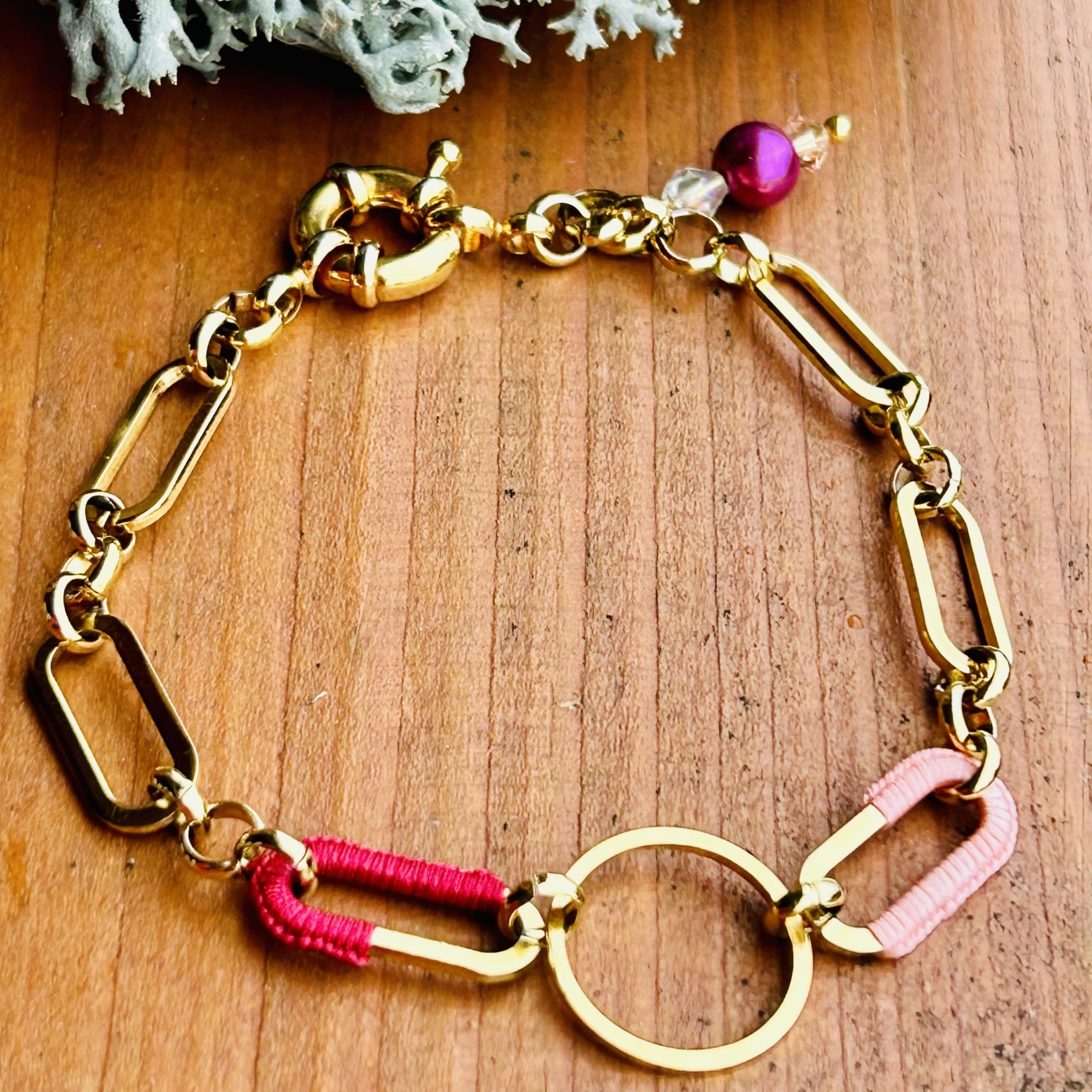 Et toujours en parfait accord toi et moi. Des mailles brodées en partie pour une touche artistique. Votre poignet se démarquera avec ce bracelet très original.