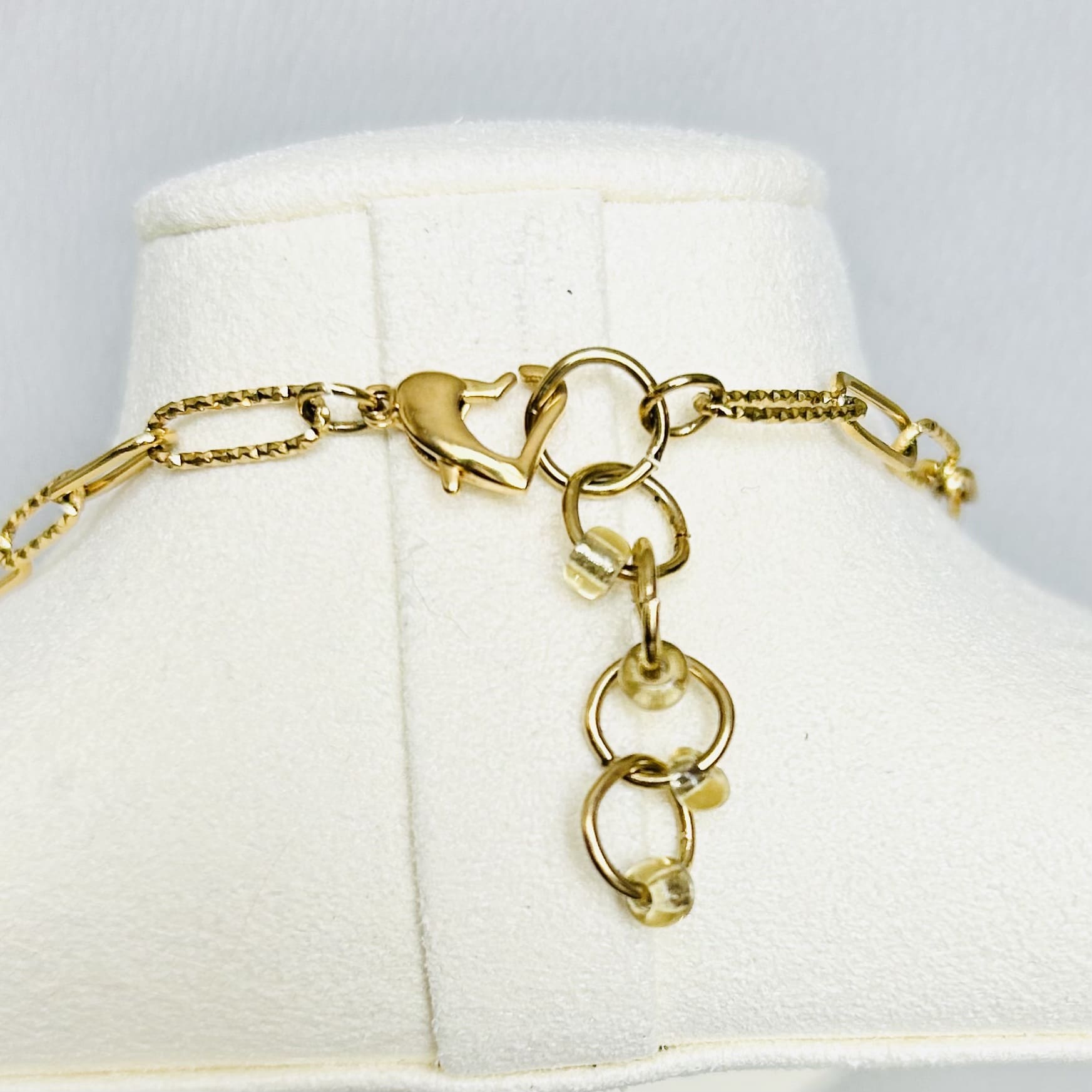 Composition : Acier inoxydable, métal doré à l’or fin, fil de jade, perle de rocaille, perle synthétique